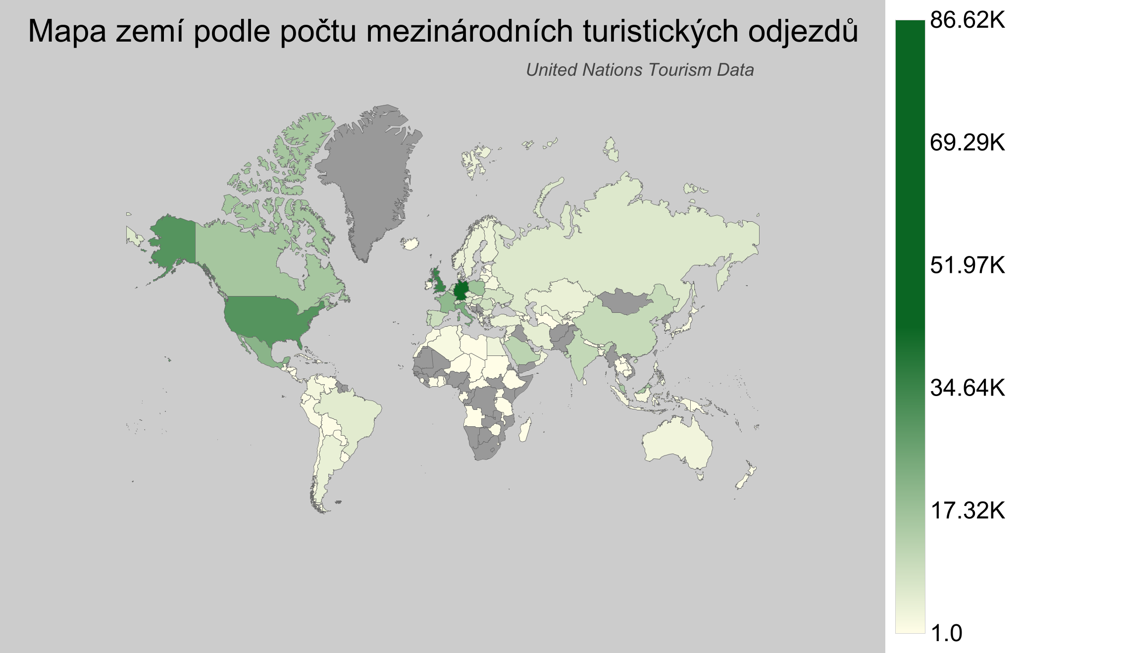 - Německo: Přibližně 86 milionů mezinárodních odjezdů. Německo je známo svým vysokým životním standardem a širokými možnostmi cestování díky silné ekonomice.