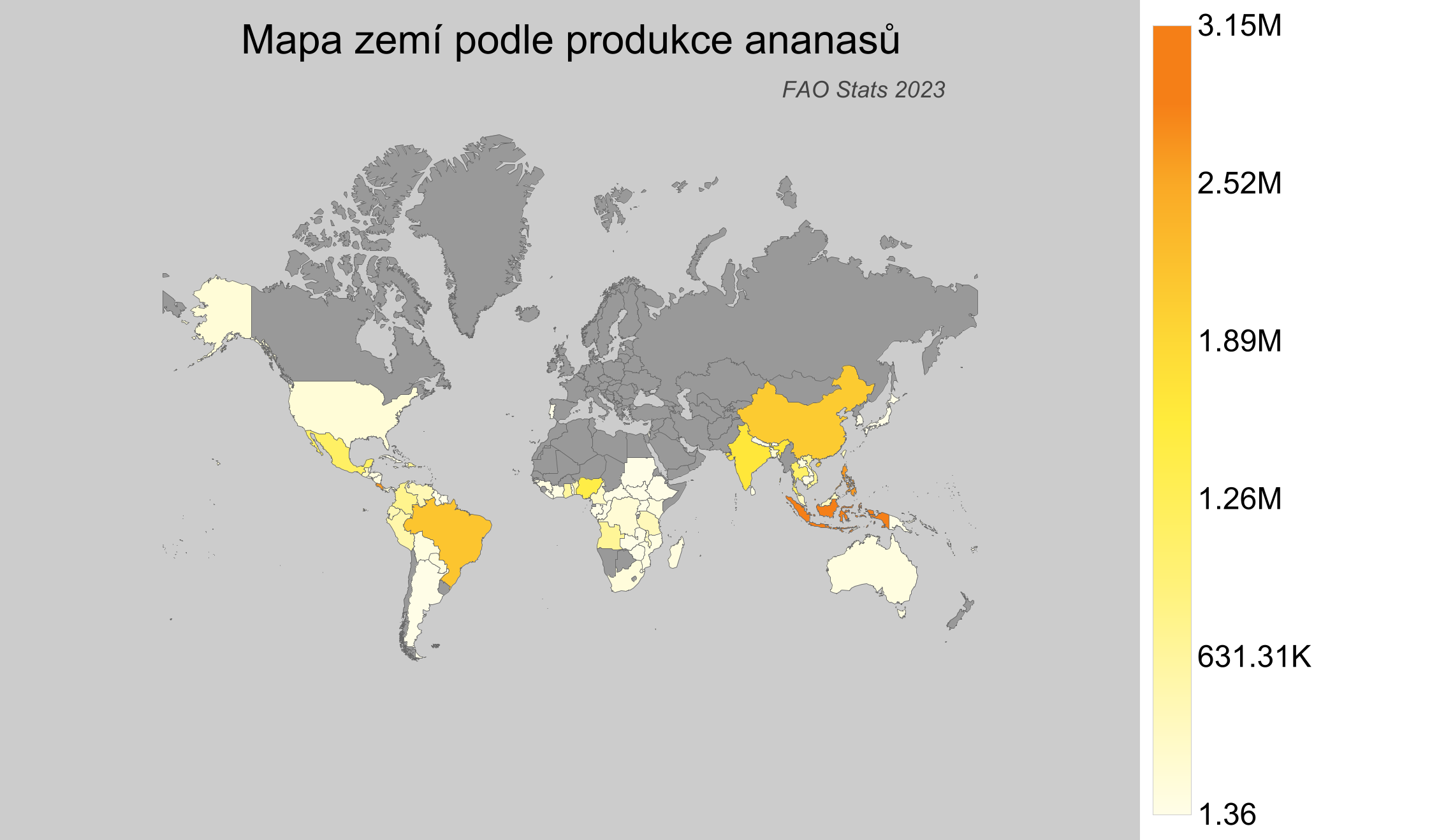 - Česká republika se neuvádí v databázi FAO jako producent ananasů.