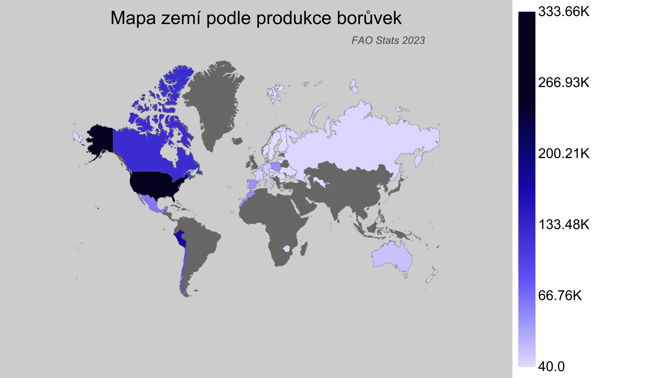 Borůvky jsou důležitým ovocem díky svým nutričním hodnotám a blahodárným účinkům na zdraví. Preferují mírné a chladné podnebí a daří se jim v oblastech s dostatečnou vlhkostí. Data o produkci borůvek jsou pro rok 2023, což jsou nejnovější dostupné statistiky podle databáze Organizace pro výživu a zemědělství (FAO) k roku 2025.