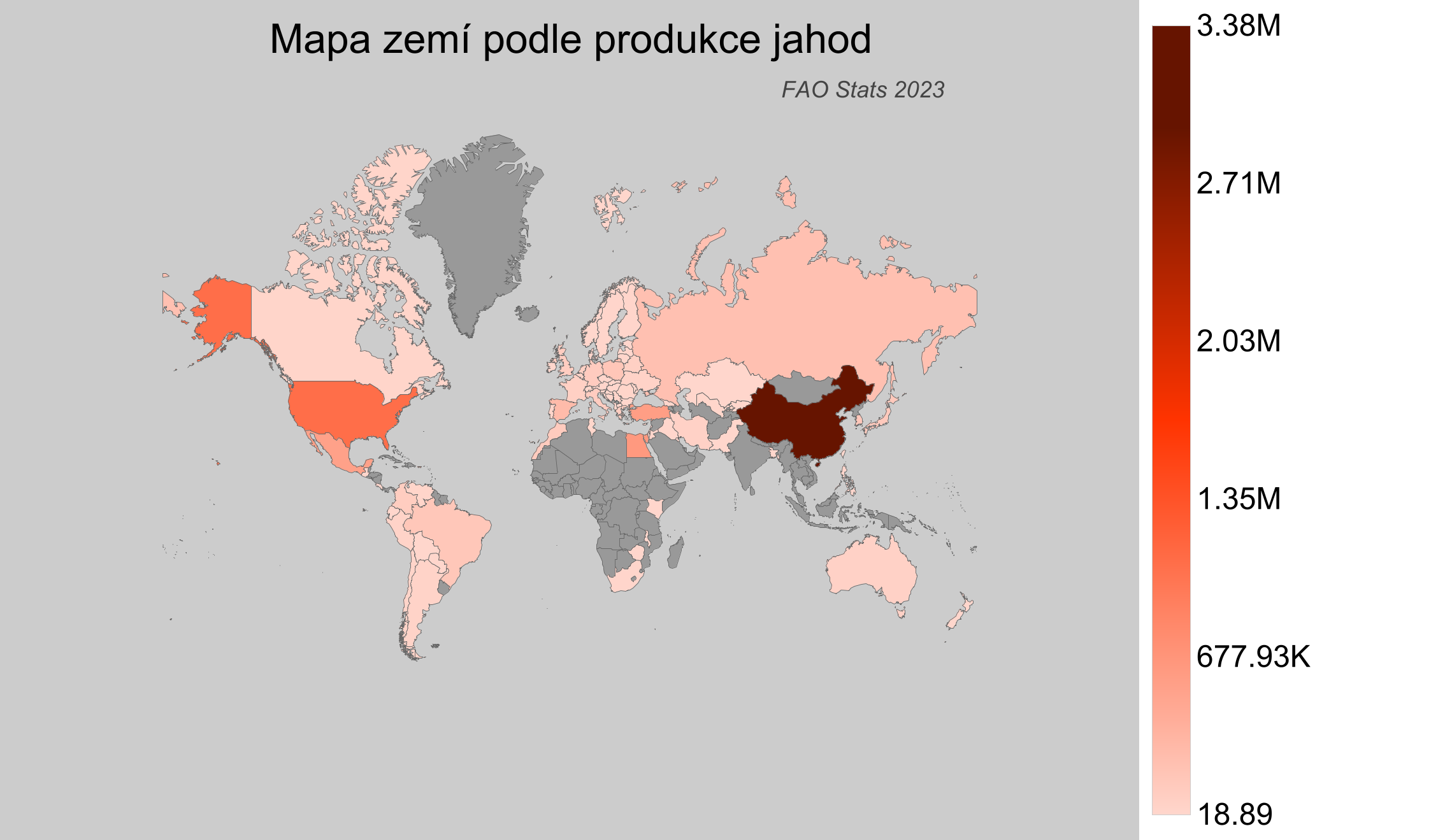 - V České republice byla produkce jahod v roce 2023 kolem 1,900 tun, což ji řadí na 66. místo při globálním měřítku.