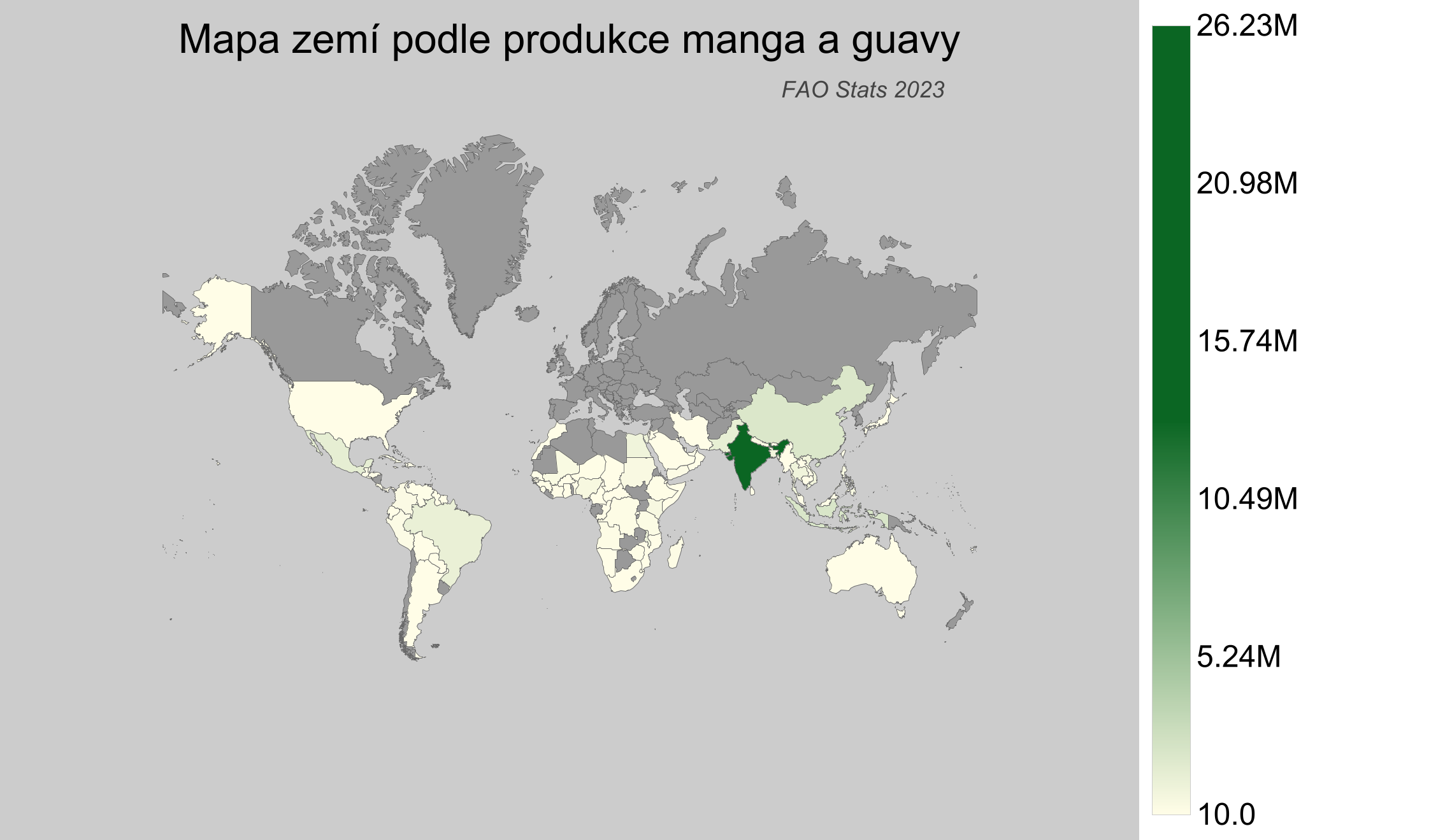 - Česká republika: Podle údajů FAO není reportována žádná produkce manga a guavy.