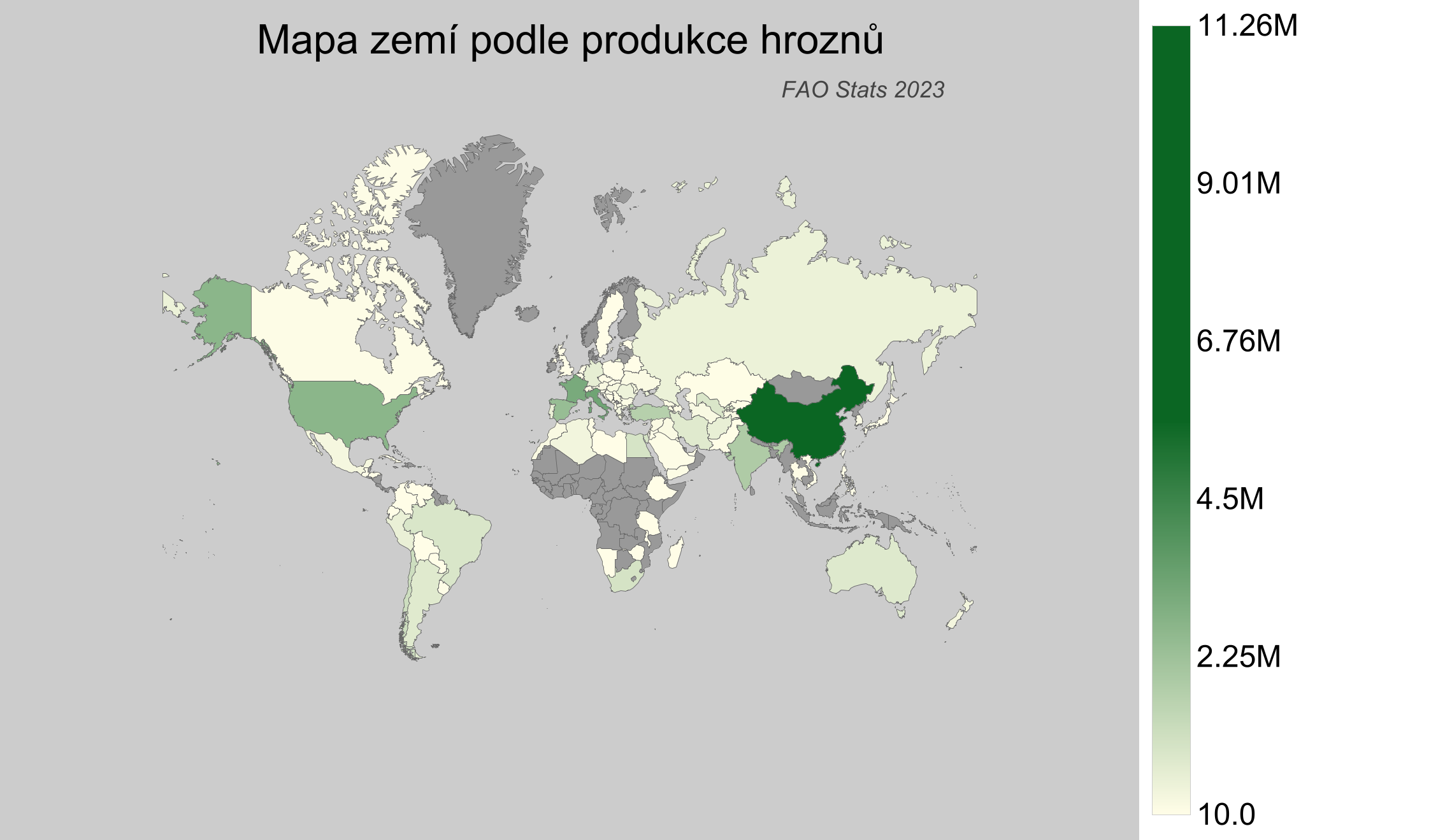 V roce 2023 byla globální produkce hroznů přibližně 72,5 milionu tun. Celkový trend za poslední desetiletí ukazuje na postupný nárůst produkce, i když se v jednotlivých letech vyskytly výrazné výkyvy. Mezi lety 1961 a 2023 se produkce globálně téměř zdvojnásobila, což zdůrazňuje rostoucí význam hroznů na světových trzích.