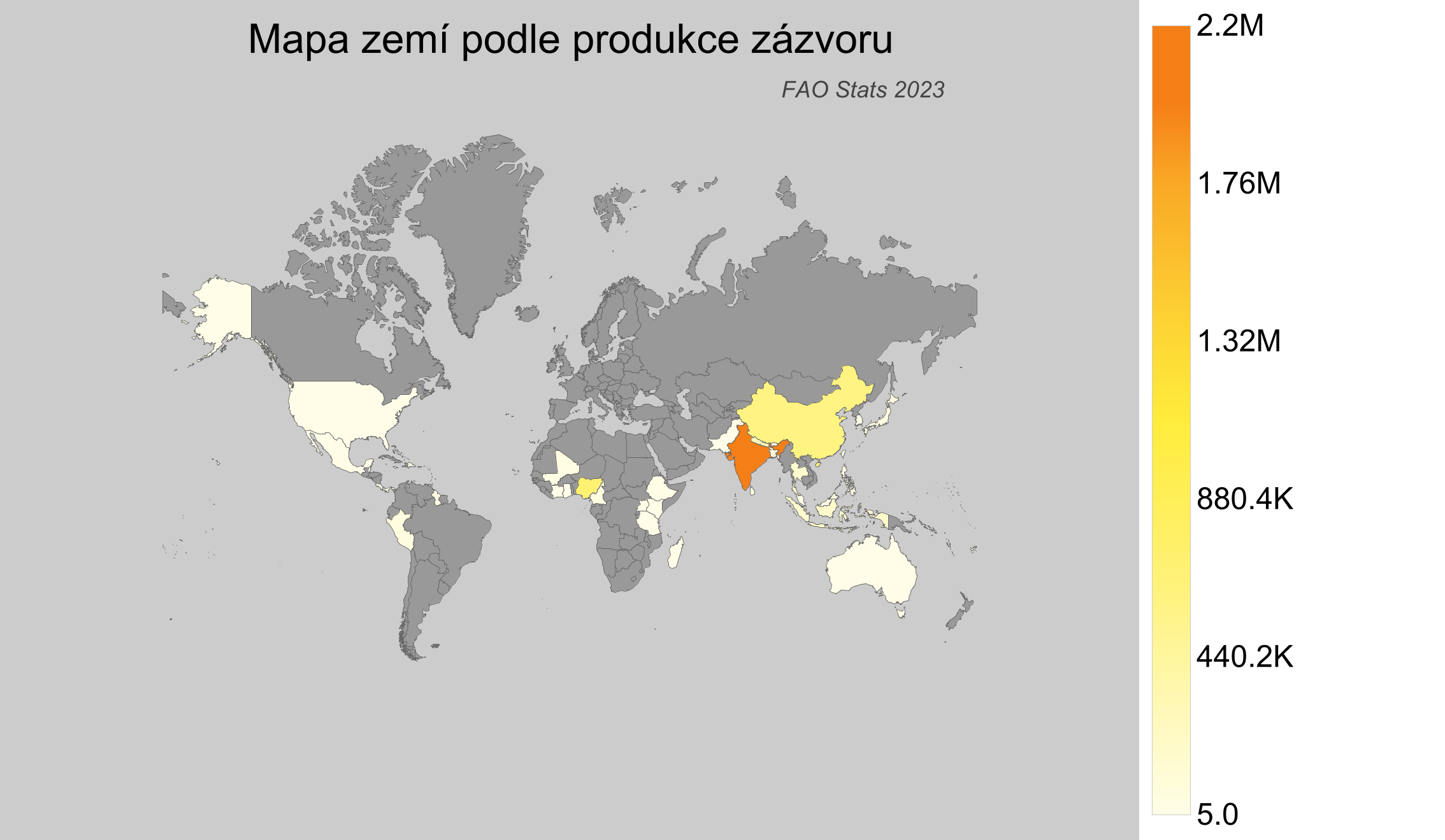 - Indie je největším producentem zázvoru s produkcí přibližně 2.2 milionu tun v roce 2023.